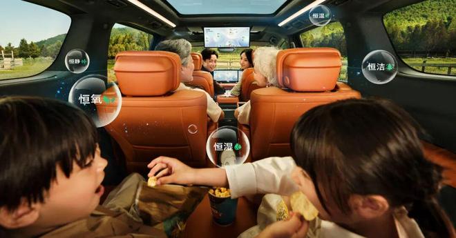 针对高净值家庭对健康出行的核心诉求,至境世家行业首创『五恒』大健康座舱,通过恒温、恒湿、恒氧、恒洁、恒静的环境控制,为MPV座舱带来越级的安全保护。