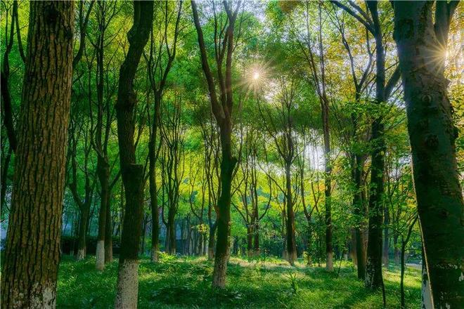 绿色森林能调节微气候,降低噪音(一条40米宽的森林带可降低噪音10~15分贝)、阻隔尘埃(每公顷森林每年能吸附50~80吨粉尘),调节温度与湿度,净化空气,使人平静、舒服,并能杀灭众多病菌,实现人与自然和谐相处。