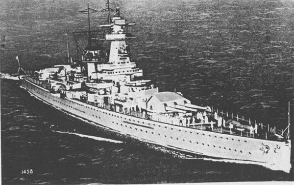 装备武备:2座三联装280毫米主炮,8座单管150毫米炮;3座双联装105毫米高射炮,8座双联装37毫米高射炮;2座4联装533毫米鱼雷发射管。